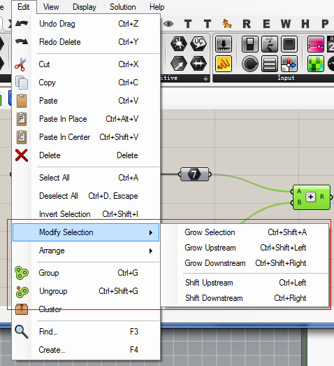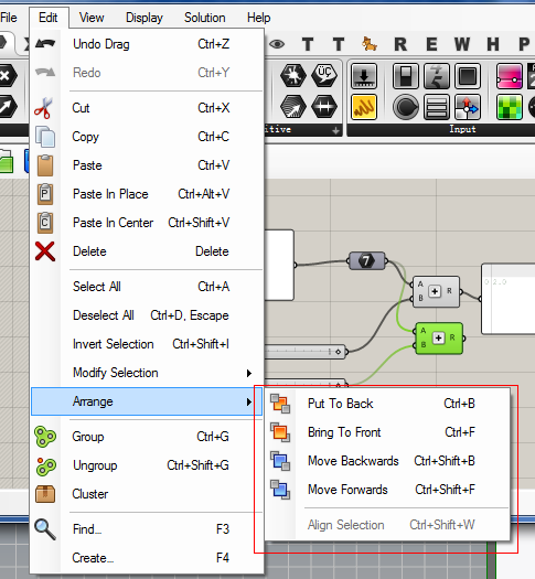 感谢各位关注。新加入成员可以查看之前发布的教程。由于用户基础不一,我们要由浅入深,先讲基础操作,再讲工程实例,再到深入GHA开发,以及各种复杂算法。 Undo Ctrl+Z 撤销 Redo Ctrl+Y 重做 Cut Ctrl+X 剪切 Copy Ctrl+C复制 Paste Ctrl+V粘贴,此粘贴是粘贴到原来位置,并少许偏移 Paste in Place Ctrl+Alt+V此粘贴完完全全的原位粘贴 Paste In Centr Ctrl+Shift +V此粘贴是粘贴到视口中心,比较常用 Delete 删除选中计算器,如果点到编组上面,会解散编组。 Select ALL Ctrl +A全选 Deselect All Ctrl+D,Escape取消选择 Invert Selection Ctrl+Shift +I(大写i)反选 下面几个比较有意思: Grow Selection Ctrl+Shift+A,当选中某些电池后,按此键会选中所有与这些计算器链接的计算器 Grow Upstream Ctrl+Shift +Left(左箭头)当选中某些计算器后,按此组合键,将选中这些计算器的输入端电池 Grow DownStream Ctrl+Shift +Right(右箭头)当选中某些计算器后,按此组合键,将选中这些计算器的输出端电池 Shift Upstream Ctrl+Left(左箭头)当选中某些电池后,按此组合键,将选中这些电池的输入端电池,并将视口重置到输入端电池的中心,与上面Ctrl+shift+Left的区别在于继续按左键则不会包含当前选中,+个Ctrl后可以连续将选中电池都添加到选择集内。 Shift DownStream Ctrl+Right(右箭头)对选中输出端电池,与上面类似。 下面是对计算器前后次序进行调整的: Put To Back Ctrl+B移动到与其重叠的电池底端 Bring To Front Ctrl+F将选中电池移动到与其重叠的电池前端 Move Backwards Ctrl+Shift +B将选中电池移动到所有电池的最底端 Move Forwads Ctrl+Shift +F将选中电池移动到所选电池的最顶端 Align Selection Ctrl+Shift +W好像新版本一直不能用 Group Ctrl+G将选中计算器编组 Ungroup Ctrl+shift +G将选中计算器移除编组,真正的一次性解除编组应该是将选中编组按Del键。 顺便将编组右键菜单也说了: 编组实际上是一个很有用的东西,我比较喜欢把重要的输入输出端,以及关键电池用红色编组着重显示,这样每次这些电池是必看的。 第一个框是给此编组命名。 Select All是选中编组内所有电池 下面三个是编组的三种造型。双击编组空白处会自动切换这几种造型,看你喜欢什么啦。 Ungroup解除编组 Add to group,先选中组外的计算器,然后右键编组,可将计算器添加到此编组内。 Remove from Group将所选电池移出编组=Ctrl+Shift+G Colour设置编组颜色 上面颜色条A是透明度调节,上面有两种,一种HSV色(上图)一种RGB色如下图: 还有一只笔,相当有用,这只笔可以拾取Windows里面任意地方的颜色。我们再做渲染的时候,可以用这支笔拾取效果图上的颜色来渲染犀牛内物件,效果很好。 另外最后两个方块:左边那个是默认颜色,无论你怎么调节,双击此块都会回到这个颜色,右边那个就是你正在调节的颜色预览。 菜单的最后一项,Make Colour Default将当前设置的颜色设置为默认颜色,那么此后你遍的组都会是这个颜色。 好了继续Edit菜单 Cluster打包,将选中计算器打包,与鼠标中键的打包按钮一样。(随后的会详细讲解打包) Find F3,查找计算器,很不错。有关查找规则文章最后附的有来自David的讲解。 Create F4,相当于双击Canvas的空白处,输入计算器名字拖出计算器,这个设置计算器快捷键后(在栏目下,右键计算器设置) 用的最多。 这里面几个基本上都在鼠标中键菜单里面,下面讲解一下常用的鼠标中键菜单: 设置,就是我们前几节讲了很久的Perference设置。 锁住文档,不计算,跟之前讲解设置菜单里面的Enable Solver一样。 计算,跟F5一个功能,将整个gh文档内电池重新计算。 这是对选中电池中有几何对象的显示操作,带着黑布的人头是蒙上眼睛,不显示,不带的是显示。经常用。(与Ctrl+Q配合使用) 这俩是对计算器的禁用和启用计算器。经常用,与Ctrl+E配合使用。 烘焙,将选中电池中输出端的几何物件烘焙到犀牛文档中。= Insert快捷键,烘焙到当前层。 点击此按钮,会将GH文档整个文档里面电池缩小到一个矩形画布上展示,用小手拖动里面的一个矩形框可以移动视口查看。如下图: 不知道此按钮的童鞋们注意了,这个功能必须mark一下。选中含有输出端含有几何对象的电池,点击此按钮犀牛文档会缩放到此几何显示! 不知道此功能之前,你是否在使用烘焙然后选择最近建立物件呢? OK,今天讲到这里。 附Find输入翻译贴(快速输入必看): 我们来自江河梦小组(Scond Effect Group),工程用到gh,所以必须学习好GH插件,而大部分权威资料都来自国外,所以就组织组员翻译来自GH官方论坛的帖子,以便学习。下面是一篇David的帖子讲解有关gh热键的,由刘友生同学翻译。 Popup shortcutsPosted by David Rutten on February 18, 2013 at 3:24pm in FAQ (Frequent Questions and Problems) Send MessageView Discussions