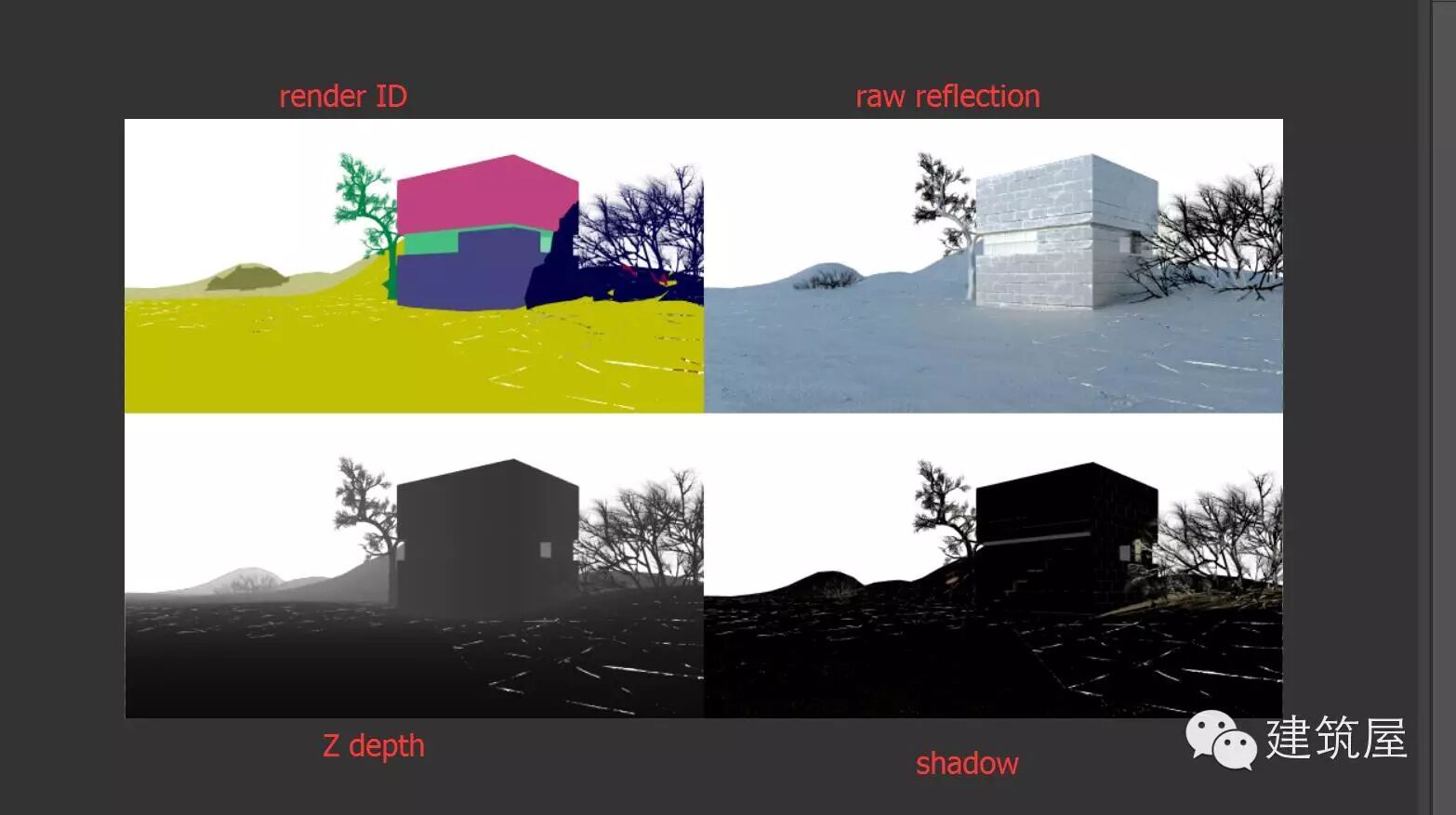 通道图(最重要的是Z depth通道 他可以营造空气感和景深效果)开始我最喜欢的后期处理: