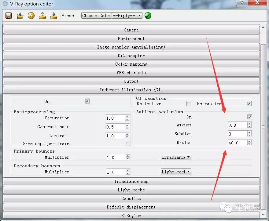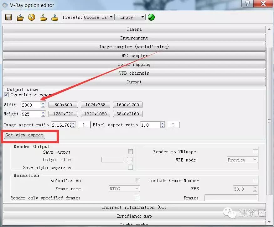 在这里我还要说一下沙漠的处理,其实一般的方法是在PS后期进行拼贴处理,速度和效果都有较大的保证。但是我确实是闲的,然后就贴了那么一张沙子图。然后处理一张置换贴图就准备开始渲染了!全局控制: 由于是沙漠场景,周围也没有什么复杂的反射背景,所以我直接使用了vary的自带天空,没有使用HDIR。参数上只开了AO将半径加大了一点。出图尺寸定为2000X925。在这里我一般点上get view aspect这样可以和你调整的窗口角度一样,比较直观。 开始渲染: